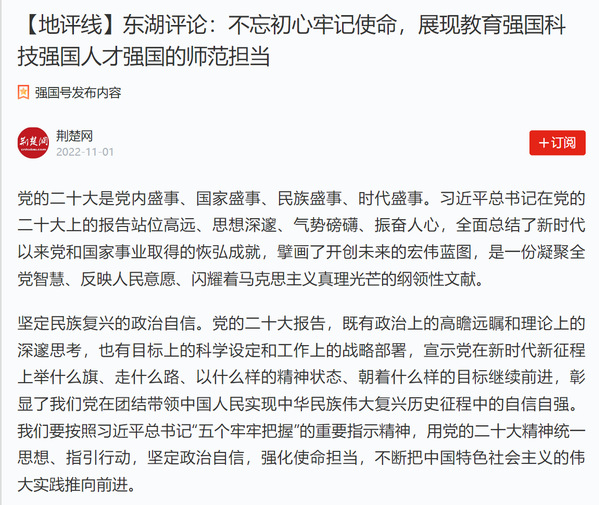 宣传宣讲全面学。在学校校园网、微信公众号等校园媒体设置“聚焦二十大”专栏,推出“师生热议党的二十大”专题,营造浓厚学习氛围。已推送各类学习资讯与成果170条,推出二十一期共计662名师生的热议,其中3名台湾教师在热议中表达了深化两岸融合发展、同心共圆中华民族伟大复兴中国梦的期待。各中层单位利用本单位网站、新媒体等平台设置学习专栏,在办公地公共空间制作党的二十大精神宣传栏。组建校领导、二级党组织书记、理论专家宣讲团、青年学生宣讲团四支宣讲队伍,发挥学校湖北省示范思想政治理论课教学基地作用,把党的二十大精神融入学生必修课《习近平新时代中国特色社会主义思想》概论。校党委理论学习中心组开展2次集体学习,学校党委主要负责人和有关专家分别作了宣讲报告。13个学院党委书记、10个党支部书记已通过专题辅导报告、专题党课、微党课等形式开展了宣传宣讲。向市委学习贯彻党的二十大精神宣讲团推荐4名博士教授参与宣讲工作,鼓励师生党员下沉社区开展学习宣讲活动。11月28日上午,市委书记张家胜来校宣讲党的二十大精神,以“学习贯彻党的二十大精神,奋力谱写全面建设社会主义现代化国家黄冈篇章”为题,与师生代表座谈交流学习体会。