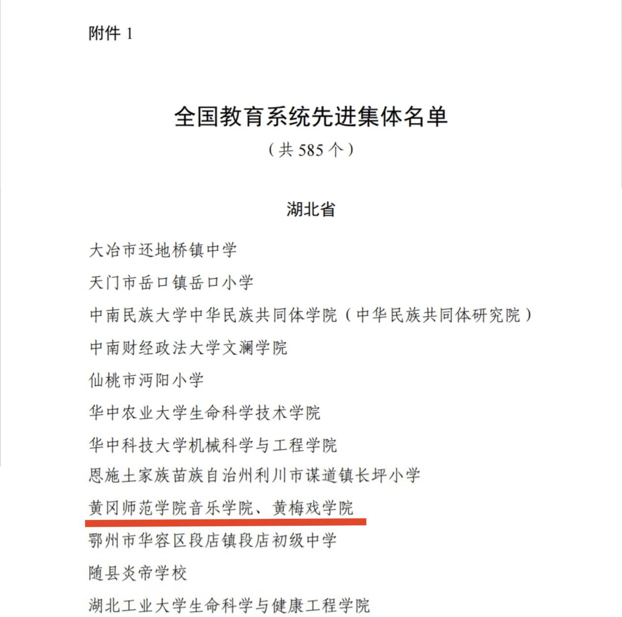 四、学校音乐学院、黄梅戏学院被评为“全国教育系统先进集体”。