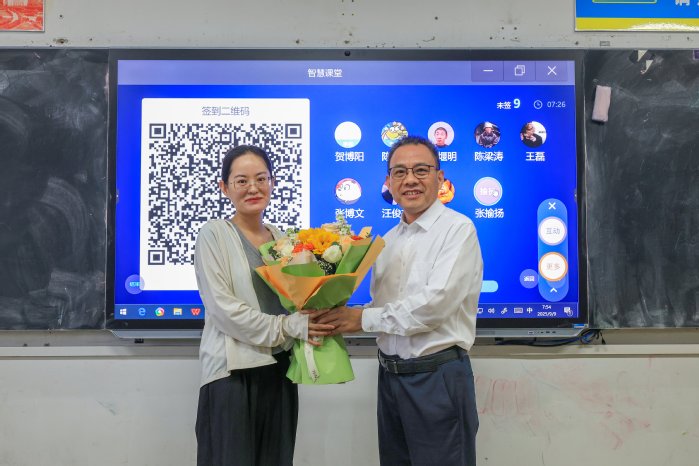 校领导代表学校向几位教师致以节日祝福,对教师们坚守岗位、恪尽职守的奉献精神给予充分肯定,勉励大家要全面贯彻党的教育方针,以教育家精神为引领,落实立德树人根本任务,牢记为党育人、为国育才的使命,从日常做起、从点滴抓起,让人工智能赋能教学创新,上好每一堂课、育好每一个人,为学校高质量发展作出新的贡献。